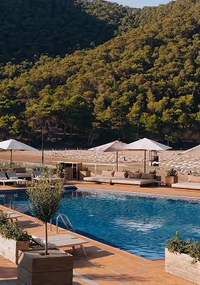 The home of IMS Ibiza overlooking the picturesque crystal-clear water of Cala Llonga bay, framed by pine-clad hills. Maximize your summit experience by staying on site at this inspiring beach side venue, just 15 minutes drive from Ibiza Town.